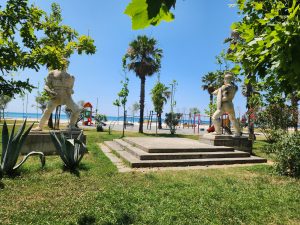 My next stop was Marinari Square, a true ensemble of greenery, symbolism, and statues representing the city’s layered history — from ancient times to the present day — alongside motifs from underwater life such as shells and fish. One of the most unusual but striking elements here is the quartet of sculptures depicting music legends Tina Turner, John Lennon, Mick Jagger, and Bob Dylan. Though they have no direct link to Durrës, they enrich the city’s urban atmosphere and place it in symbolic dialogue with the world.